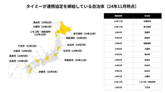2024年8月20日発表:洞爺湖町と包括連携協定を締結(https://corp.timee.co.jp/news/detail-3451/ )