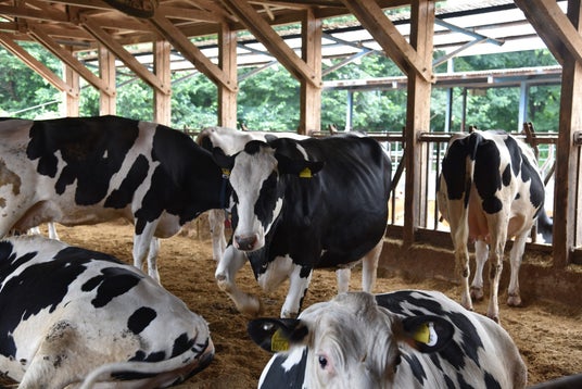2. フリーストール牛舎で、歩き回れる環境を提供し、搾乳もストレスを抑えて行い、本州では最大規模の約500頭の乳牛(ホルスタイン)を育てています。