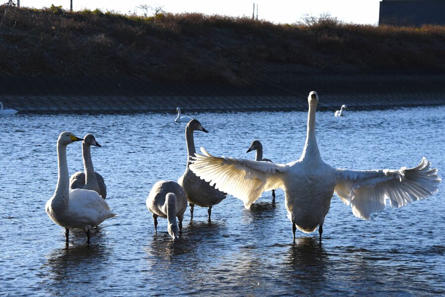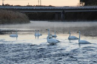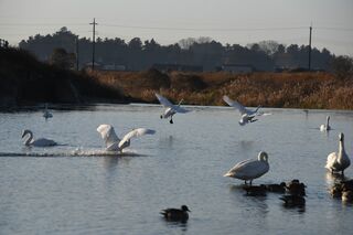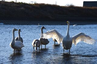 ハクチョウの顔に釣り具 小山で発見、魚釣り禁止の公園で