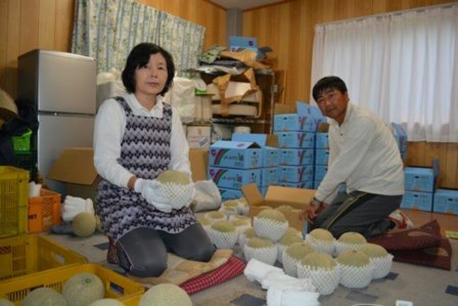 <106>はが野のメロン出荷最盛期 さわやかな初夏の甘味 網目づくりに細心の注意