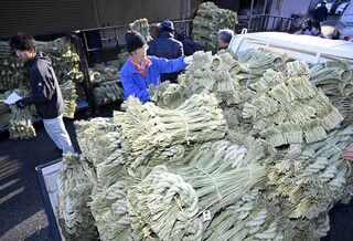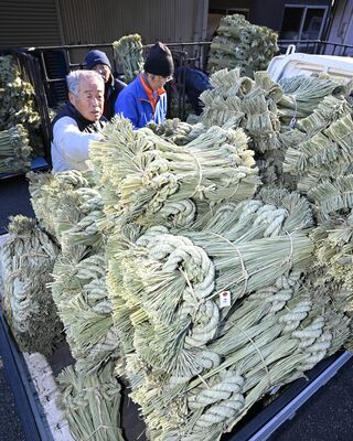 塩谷で正月飾り用しめ縄の出荷最盛期 よい新年へ真心込め 大小さまざま3…