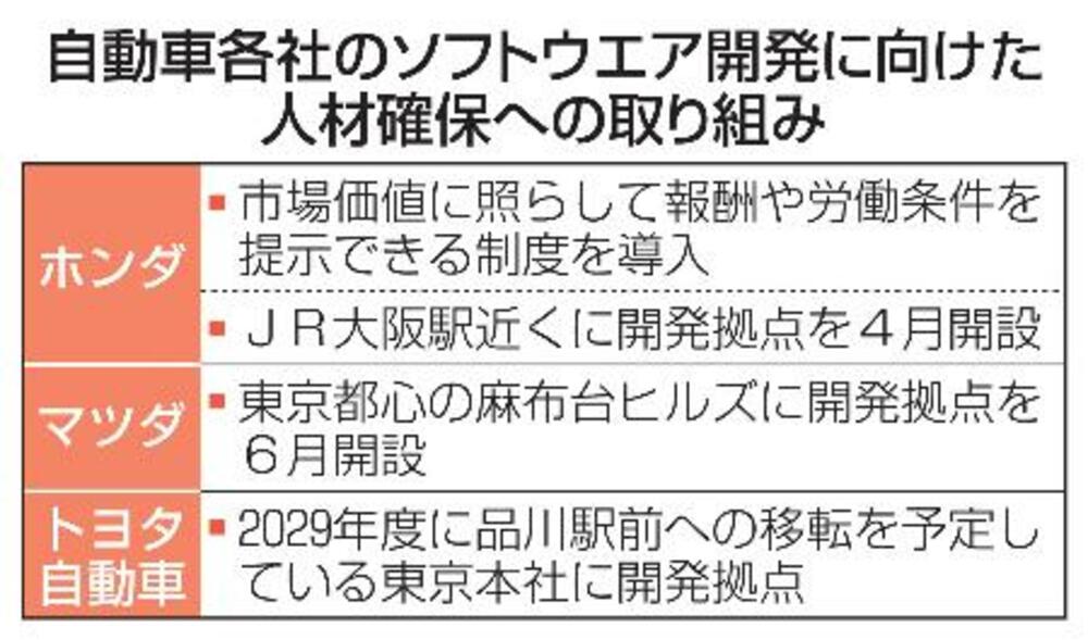 自動車各社のソフトウエア開発に向けた人材確保への取り組み