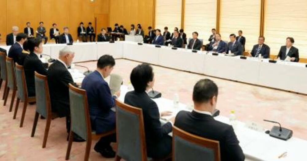 首相官邸で開かれた「新しい地方経済・生活環境創生本部」の会合=2日午前