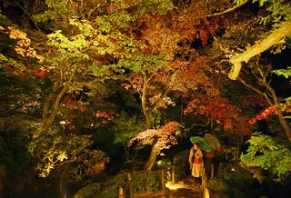雨中の闇に幽玄の世界 紅葉の名所、日光・逍遥園でライトアップ