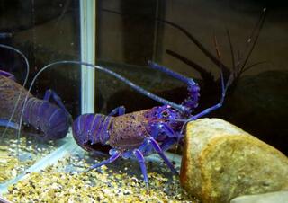 展示されている青いイセエビ=19日、千葉県勝浦市の県立中央博物館分館「海の博物館」