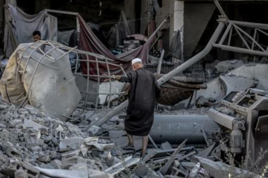 イスラエル軍に破壊された建物のがれきの中から所有物を捜すパレスチナ人=9月30日、ガザ北部ガザ市(ゲッティ=共同)