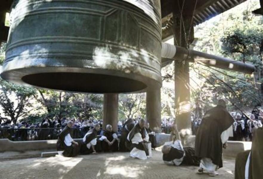 大みそか前に試し突きされる知恩院の大鐘=2024年12月、京都市東山区