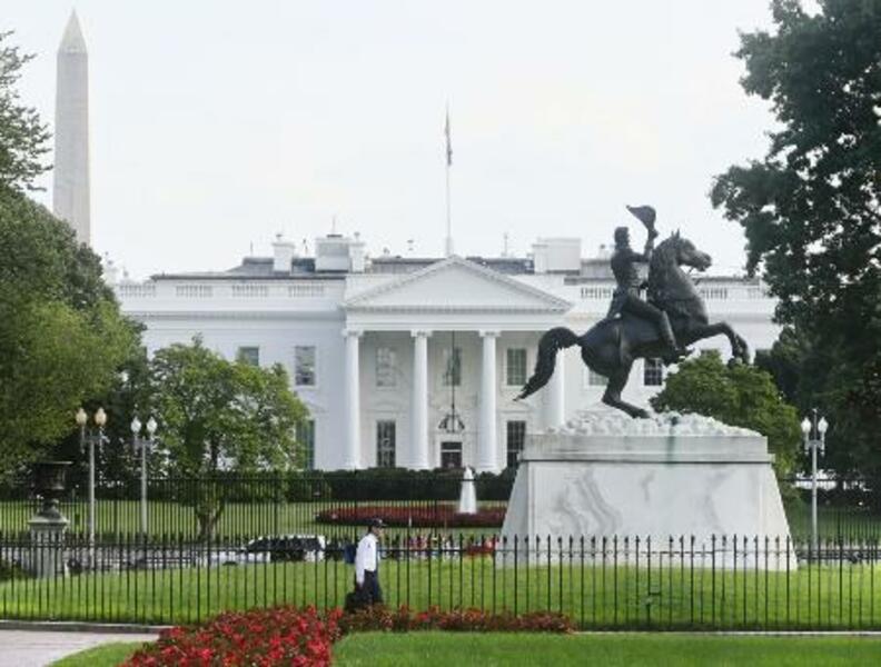 米ホワイトハウスで記者団に話すレビット報道官=2日、ワシントン(AP=共同)