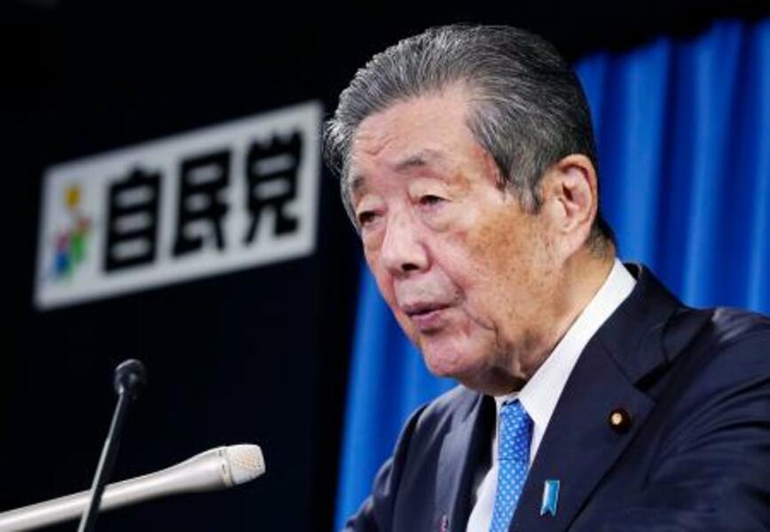 記者会見する自民党の森山幹事長=3日午前、東京・永田町の党本部