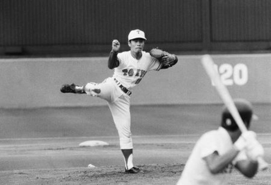 1983(昭和58)年9月、早大打線を完封した東大時代の大越健介氏=神宮球場
