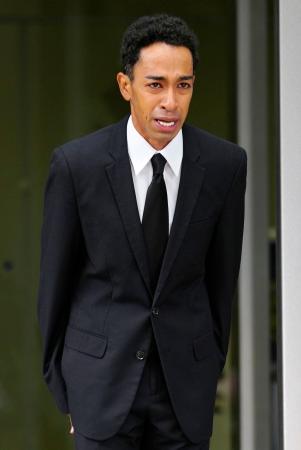 釈放され、警視庁三田署前で一礼する草間リチャード敬太さん=6日午後2時21分