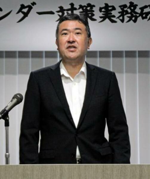 ローンオフェンダー対策の実務研修開始式で訓示する警視庁の若田英公安部長=7日午前、同庁本部