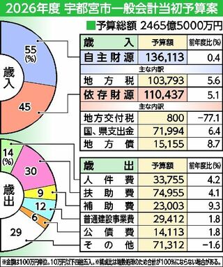 宇都宮市の2026年度当初予算案、3年連続で過去最大2465億円 LR…