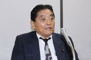 会談に臨む立憲民主党の安住幹事長(右)と国民民主党の榛葉幹事長=8日午前、国会