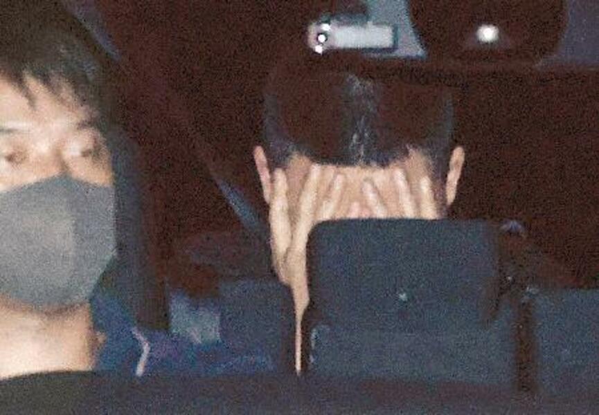 愛知県警春日井署に入る王少凡容疑者(右)=7日
