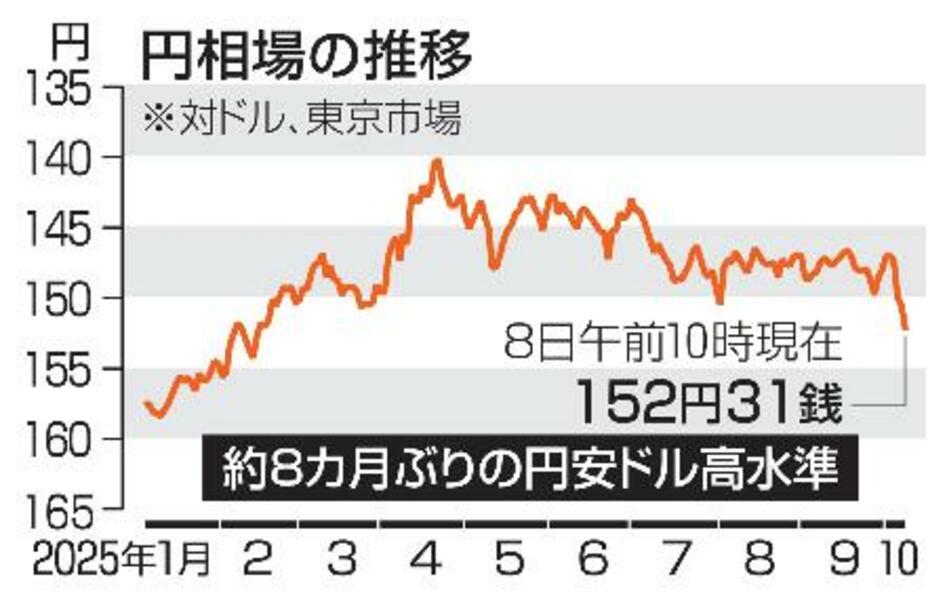 円相場の推移(10月8日午前10現在)