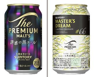 サントリーの「ザ・プレミアム・モルツ 誘惑の黒エール」(左)と「ザ・プレミアム・モルツ マスターズドリーム リミテッドエディション#66」(いずれも同社提供)