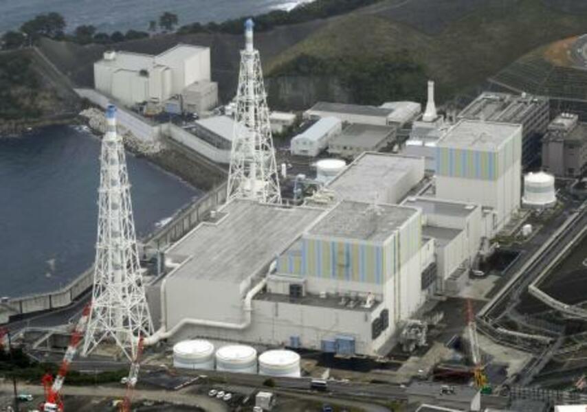 中国電力島根原発2号機(手前)。奥は1号機=2024年11月、松江市