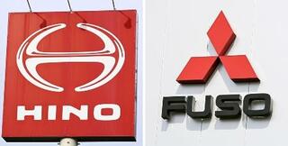 日野自動車(左)と三菱ふそうトラック・バスのロゴマーク