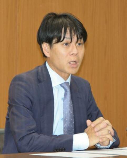 記者会見する佐賀県弁護士会の出口聡一郎会長=9日午後、佐賀市