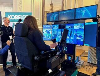ウクライナ・キーウ市に設けられた無人重機の操縦ブース=9日(国交省提供)