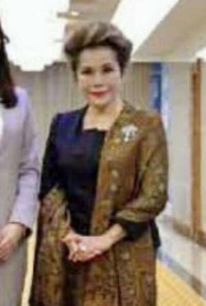 北朝鮮の朝鮮労働党創建80年の関連行事に参加するため、平壌に到着したデヴィ・スカルノ氏。10日付の労働新聞が掲載した(コリアメディア提供・共同)