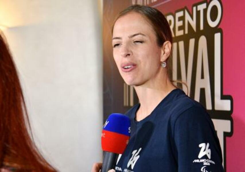 イタリア・トレントで取材に応じるカロリナ・コストナーさん=10日(共同)
