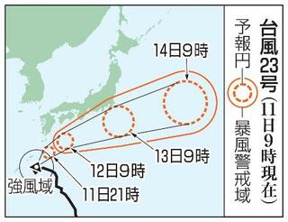 台風23号の予想進路(11日9時現在)