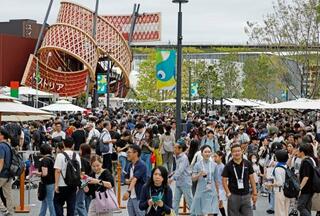 閉幕を控え大勢の来場者でにぎわう大阪・関西万博の会場=12日午前、大阪市此花区の夢洲