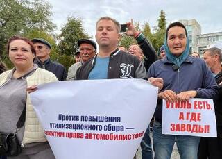 11日、ロシア極東ウラジオストクで開かれた、廃物利用税引き上げに反対する集会(共同)