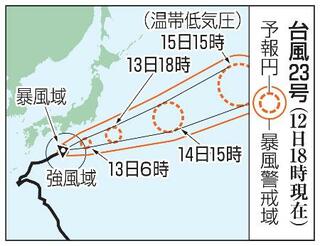 台風23号の予想進路(12日18時現在)