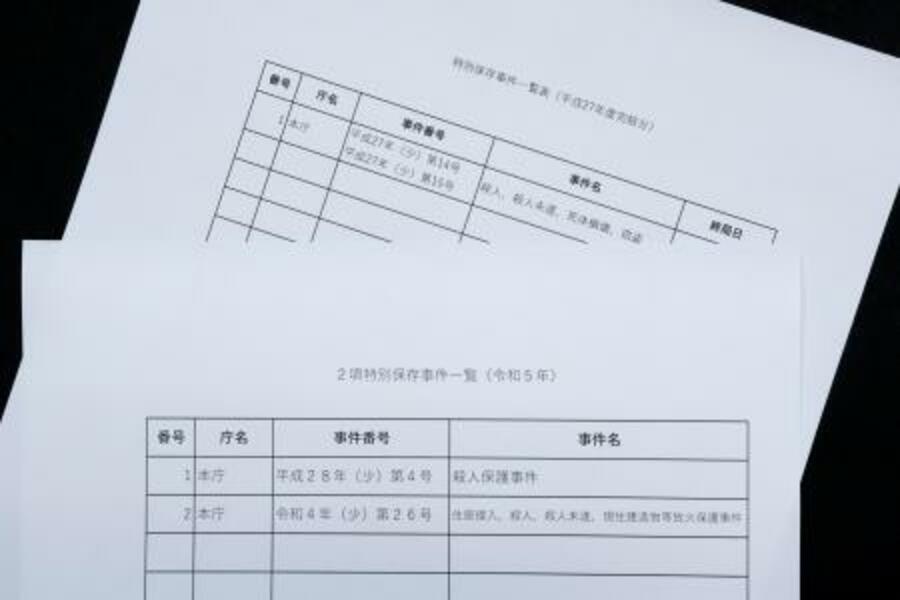 甲府家裁(手前)と長崎家裁がホームページに掲載した、特別保存に付する認定を行った事件の一覧