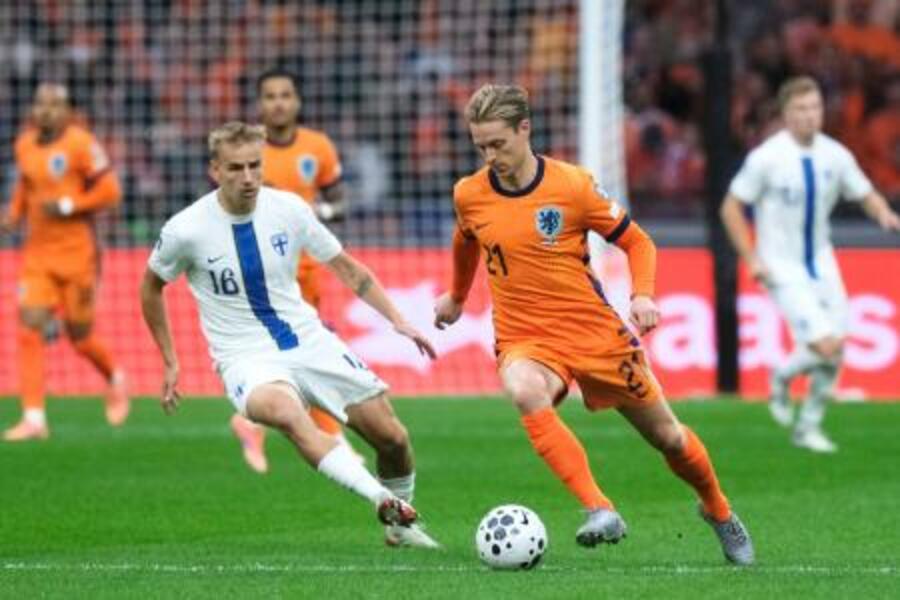 攻め込むオランダの選手(右)=12日、アムステルダム(AP=共同)