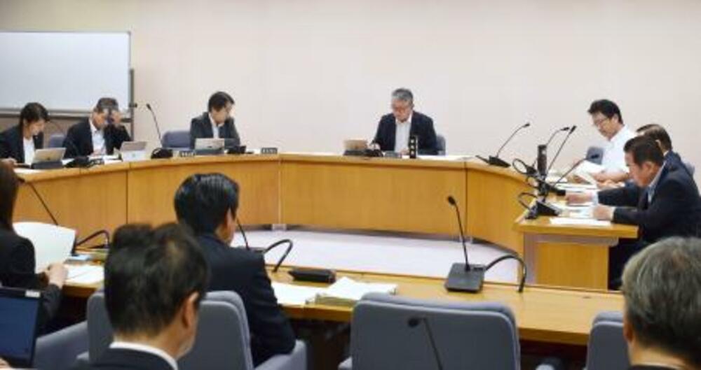 三重県が全国初となる罰則付きカスハラ防止条例の制定に向け、基本方針案を示した県議会の委員会=14日午前