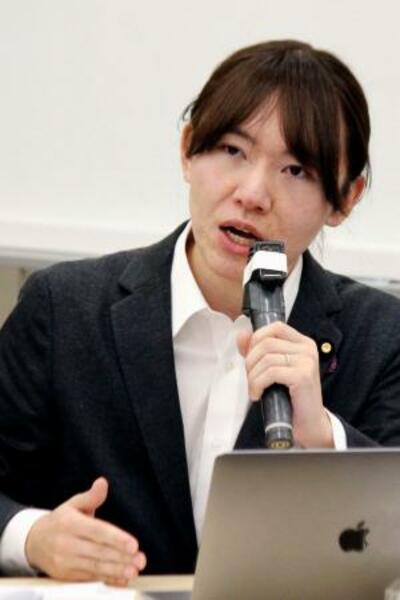 AIを活用した民主主義の在り方を検討する超党派の勉強会の初会合であいさつするチームみらいの安野党首=15日午前、国会
