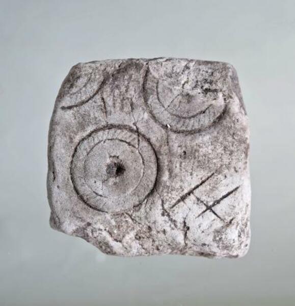 須玖遺跡群で出土した、一度に3面の青銅鏡を作れる石製の鋳型(福岡県春日市提供)