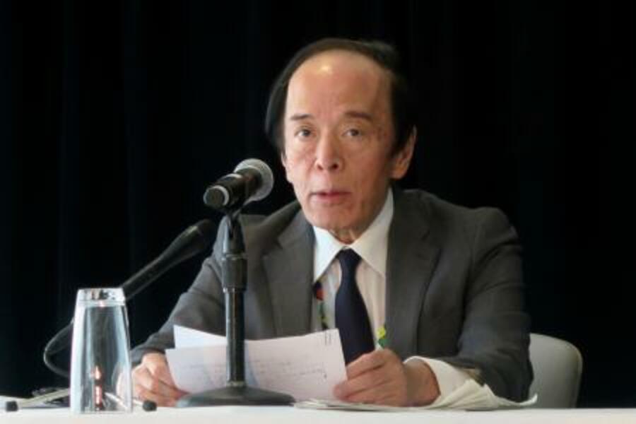 記者会見する日銀の植田総裁=16日、米ワシントン(共同)