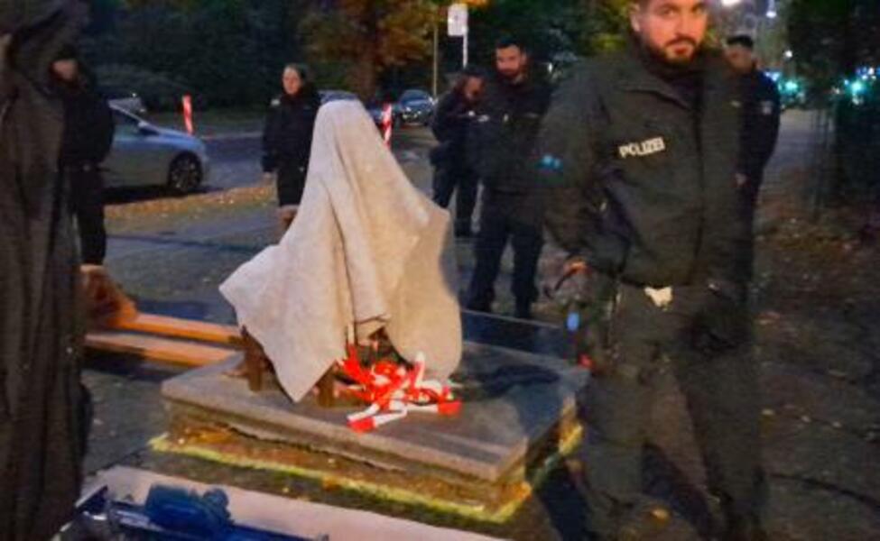 17日、ベルリン市ミッテ区の公有地から撤去される少女像(近隣住民提供・共同)