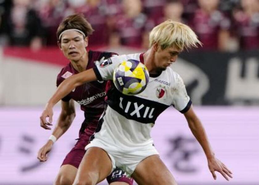 神戸―鹿島 後半、神戸・扇原(奥)と競り合う鹿島・鈴木=ノエスタ