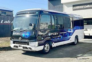 トヨタ自動車が箱根駅伝の運営のために提供する燃料電池車の小型バス「コースター」