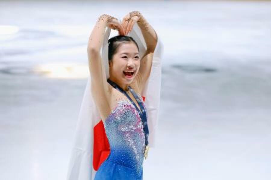 グランプリシリーズ初出場優勝を果たした中井亜美=アンジェ(共同)