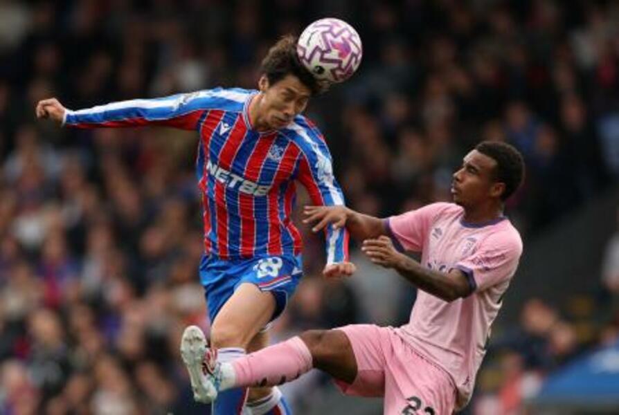 ボーンマス戦で競り合うクリスタルパレスの鎌田(左)=18日(アクションイメージズ・ロイター=共同)