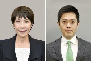 自民党の高市早苗総裁(左)、日本維新の会の吉村洋文代表
