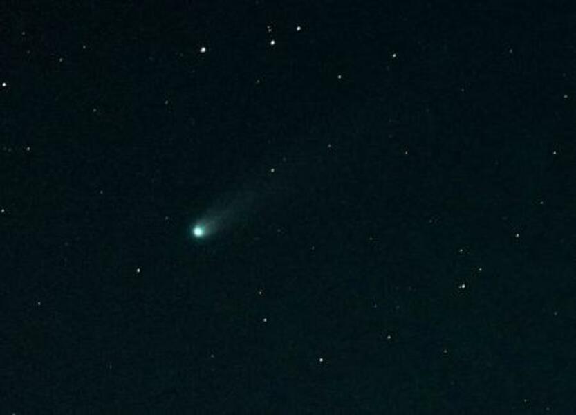 北海道十勝地方の浦幌町で、北西の空に見られた「レモン彗星」。21日に約1300年ぶりに地球に最接近する=19日午後6時46分(10秒露光、赤道儀使用)