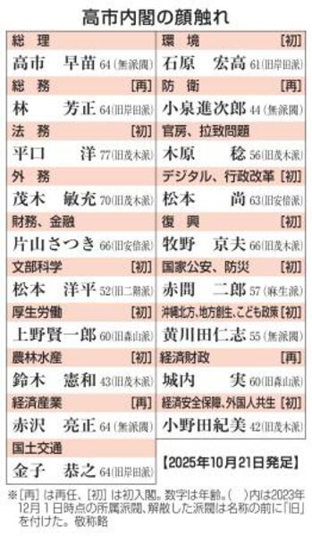 高市内閣の閣僚名簿を発表する木原稔官房長官=21日午後4時38分、首相官邸