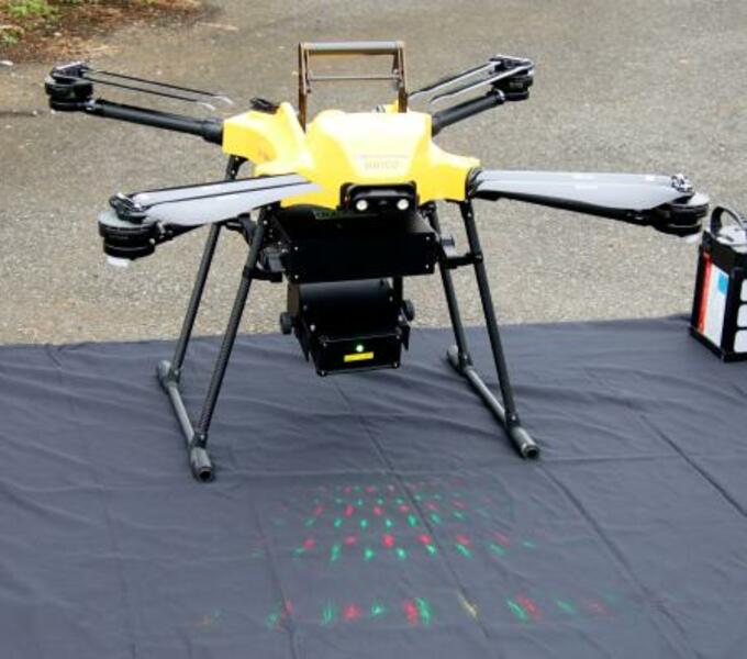 野鳥を鶏舎から遠ざけるレーザーを搭載したドローン=21日午後、千葉市若葉区