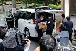 「退職代行モームリ」の運営会社「アルバトロス」が入るビルから運び出した段ボール箱を車両に積み込む警視庁の捜査員ら=22日午前11時32分、東京都品川区