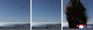 北朝鮮のミサイル総局が行った極超音速兵器の発射実験=22日(朝鮮中央通信=共同)