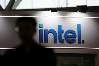 米半導体大手インテルのロゴ=8日、ニューデリー(ロイター=共同)