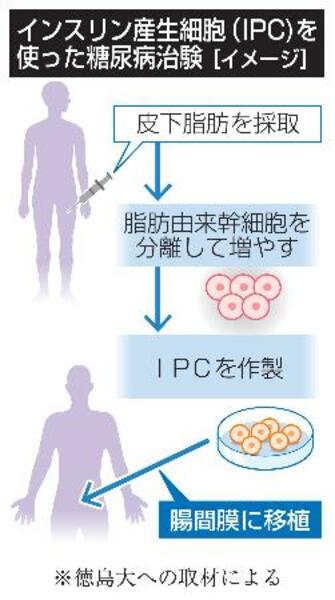インスリン産生細胞(IPC)を使った糖尿病治験(イメージ)